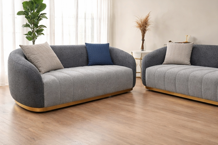 Merry sofa brings contemporary elegance and everyday comfort into your home. Designed with a modern curved silhouette, this sofa blends soft aesthetics with functional comfort, making it a perfect centerpiece for stylish living spaces. Upholstered in premium dual-tone fabric, Merry offers a plush seating experience while adding visual depth and sophistication to your interiors.