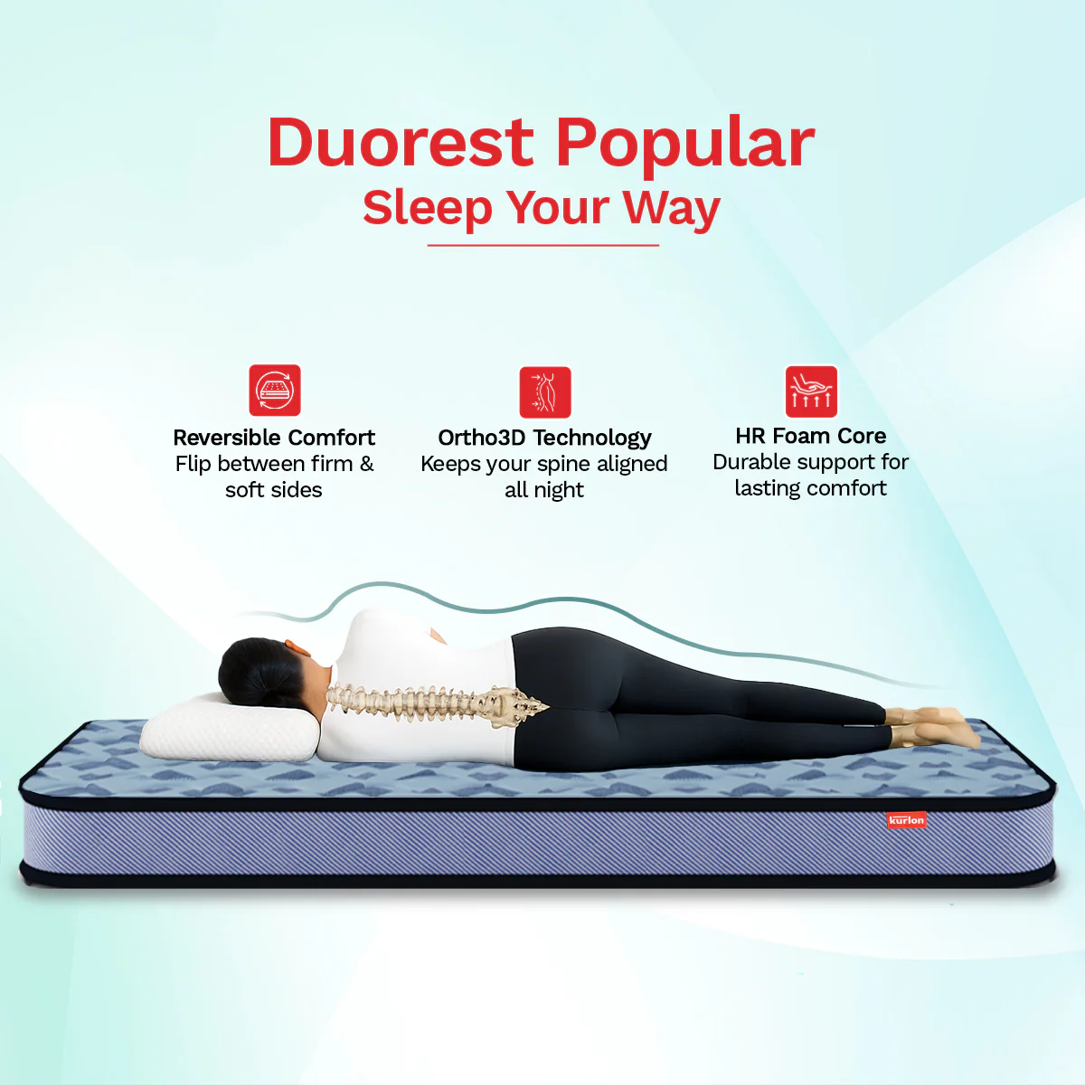 What’s more? It’s reversible, which means you can flip it for even wear, extending the mattress’s life and making it a smart buy. Priced affordably under Rs. 10,000, the Duorest Popular is your go-to choice for quality sleep without denting your savings. Give yourself the gift of restful nights with Duorest Popular a mattress that understands the importance of a good night?s sleep.